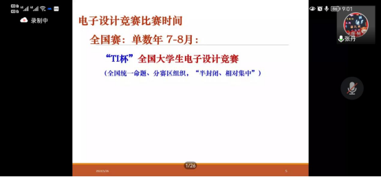 1月26日至28日,张丹老师围绕大学生电子设计竞赛相关资源和单片机C语言、电子线路设计方法等内容开展系列讲座。他详细介绍了全国大学生电子设计竞赛及相关资源,表示电子设计竞赛的本质是理论设计和实际制作,同学们根据题目要求,综合运用自身知识设计出一个能够实现相应功能的作品的比赛,其内容以硬件为主,软件为辅。随后,他详细介绍了全国奖评审流程规则以及单片机C语言的相关知识。在电子线路设计方法概述专题中,他从不同角度,层层递进地讲述了电子设计电路的基本流程以及基本单元电路设计。“电路设计不仅要考虑功能,更重要的是注重性能。”