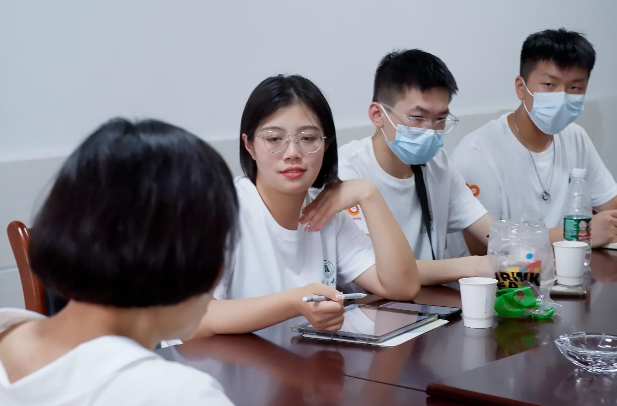 图为实践队员回访时冯局长了解实践小组调研情况。