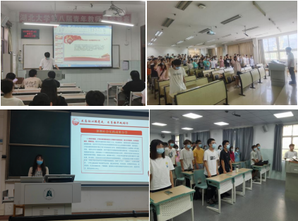 9月18日晚6点,我院2021级软件工程专业在教4-307教室开展了“不忘初心跟党走,不负韶华砥砺行”9月主题团日活动。活动开始,全班齐唱中国共产主义青年团团歌,同学们铿锵有力的声音充分彰显了班级同学们强烈的爱国爱党爱团的情怀。随后通过PPT展示,播放视频的形式学习《论党的青年工作》、习近平总书记视察武汉重要讲话和中国共产党湖北省第十二次代表大会重要精神、习近平在庆祝香港回归祖国25周年大会暨香港特别行政区第六届政府就职典礼上的讲话精神。活动最后,由团支书带领全体同学重温入团誓词。方航同学表示:“本次团日活动我学到了要爱党爱国,不忘初心跟党走,不负自己的青春,创造出属于自己的价值”。