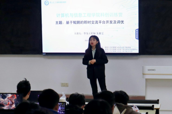 为进一步提高我院学生科研创新能力,切实帮助学生加深对华为前沿技术的理解,积极探索计算机知识的发展趋势,11月4日、5日,学院于四号教学楼开展科研创新训练营活动,邀请华为工程师朱雅雯、苏江明作辅导讲座。