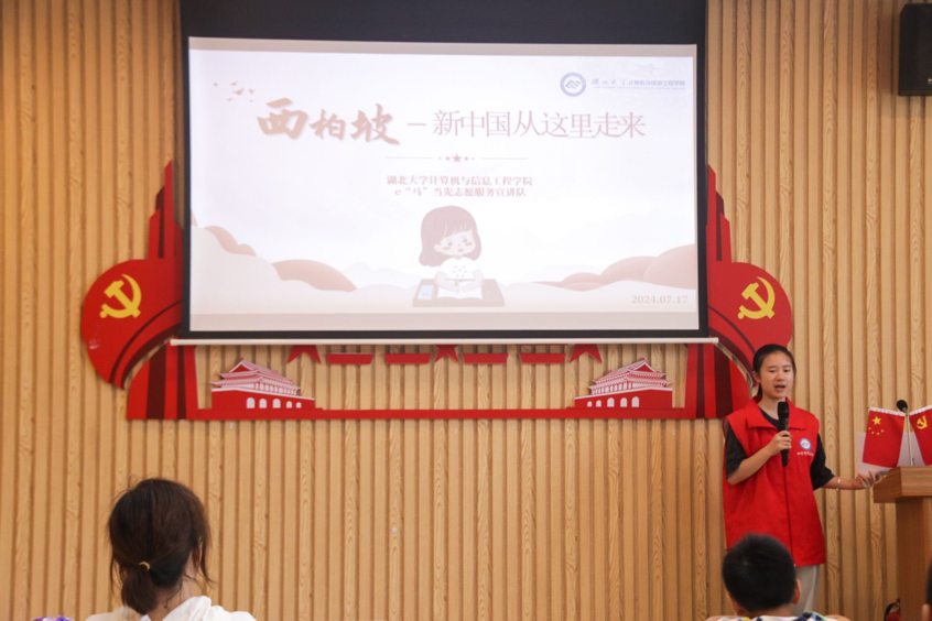 当天,水岸星城社区联合伟德国际victor1946计算机与信息工程学院e“码”当先志愿服务宣讲队为社区青少年儿童带来了一场特殊的西柏坡精神宣讲。这场宣讲采用知识与手工相结合的新形式,让历史活起来、让西柏坡精神点亮课堂。