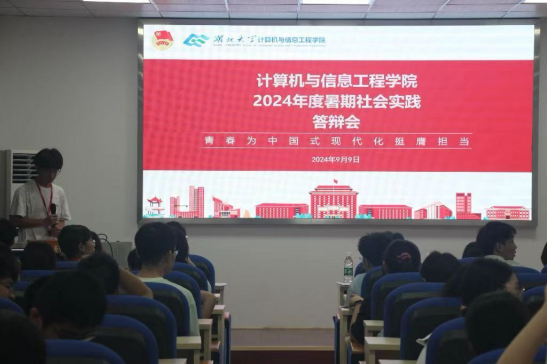 为深入学习贯彻习近平新时代中国特色社会主义思想,积极培育和践行社会主义核心价值观,引导学生在社会实践中受教育、长才干、做贡献,9月9日中午,我院在学院102报告厅举办了2024年暑期社会实践答辩会。学院辅导员汪诗琪、张剑恒、马丹阳担任此次答辩会评委,答辩会由院团委组织部王思畅主持。