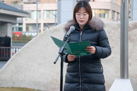 12月2日,伟德国际victor1946在思睿广场举行升国旗仪式暨“法治护航成长,朋辈领航未来”国旗下的思政课。武汉市人大常委会委员、法制委员会副主任委员戴丰善,校党委副书记侯勇,学生工作部(处)负责人,化学化工学院、计算机与信息工程学院领导班子成员及师生代表参加升旗仪式。仪式由化学化工学院党委书记陈琴主持。