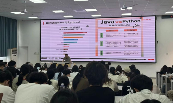 软通动力高级讲师唐逢亮为学生开展职业生涯规划指导讲座。他立足对IT行业的深度洞察与丰富的从业经验,以行业迅猛发展态势为切入点,剖析专业未来走向与潜在就业机遇。随后,着重介绍了技术研发、项目管理、产品运营等职业方向,结合各方向特点与要求,为学生提出了学习建议。