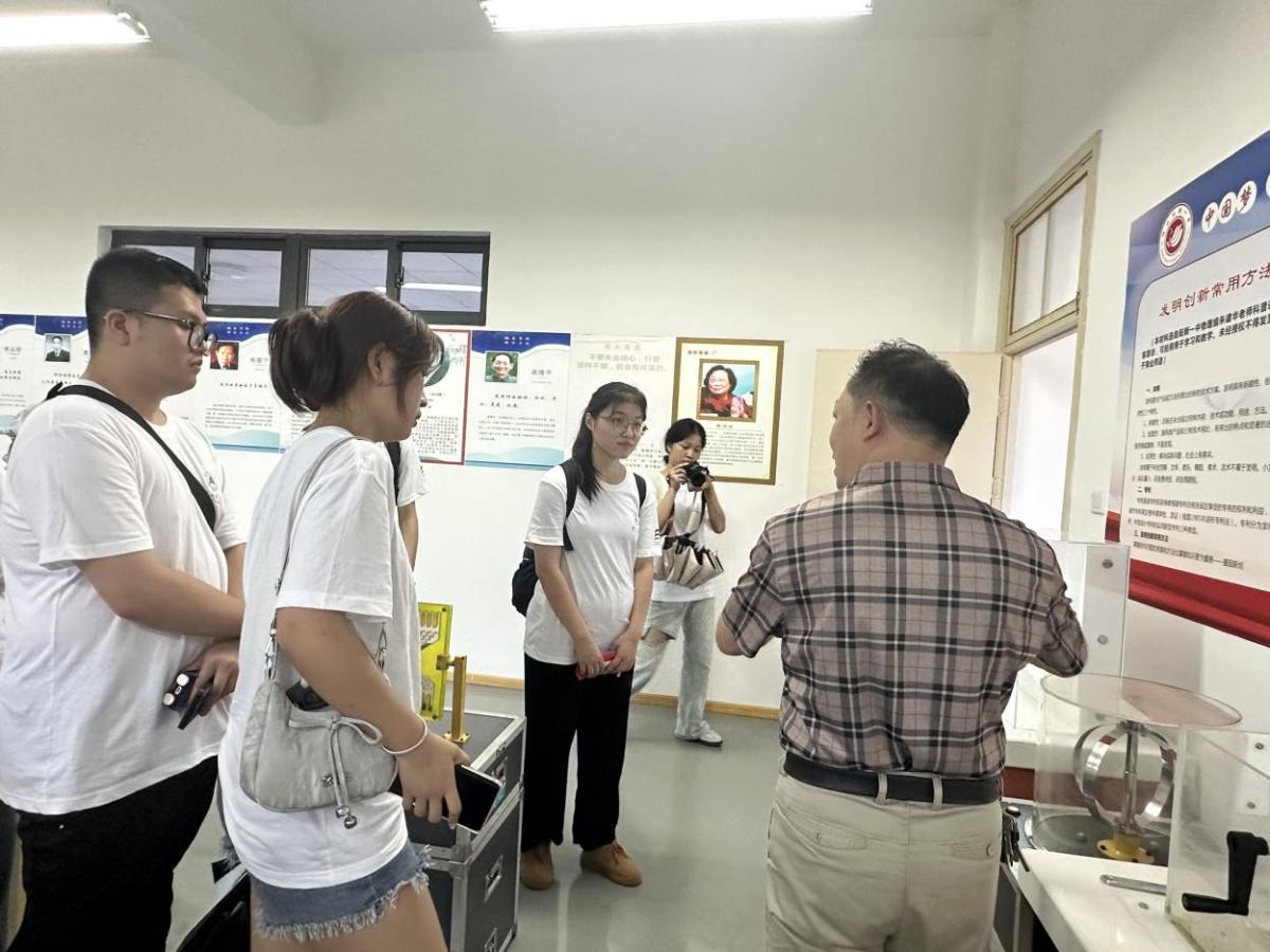 图为朱建华老师为实践队成员介绍科技馆展品。实践团队供图