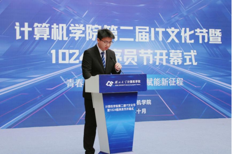 随后,学院团委负责人潘洒详细介绍了第二届IT文化节及1024程序员节的活动安排,论坛报告类、科创实战类、文化交流类、朋辈引领类等四大板块活动将带领计算机学子全方位领略计算机学科的魅力,让师生们对后续活动充满期待。