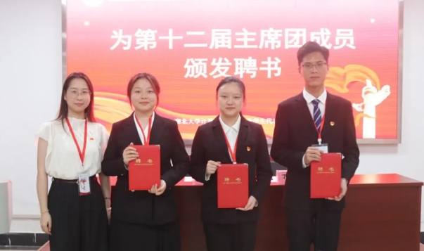在第四次全体会议暨闭幕式上,院团委书记潘洒为学院第十二届学生会主席团成员颁发证书,学院新旧两届学生会主席团成员郑重地完成会旗交接仪式,并进行了庄严宣誓。至此,本次学生代表大会在《伟德国际victor1946校歌》中正式闭幕。