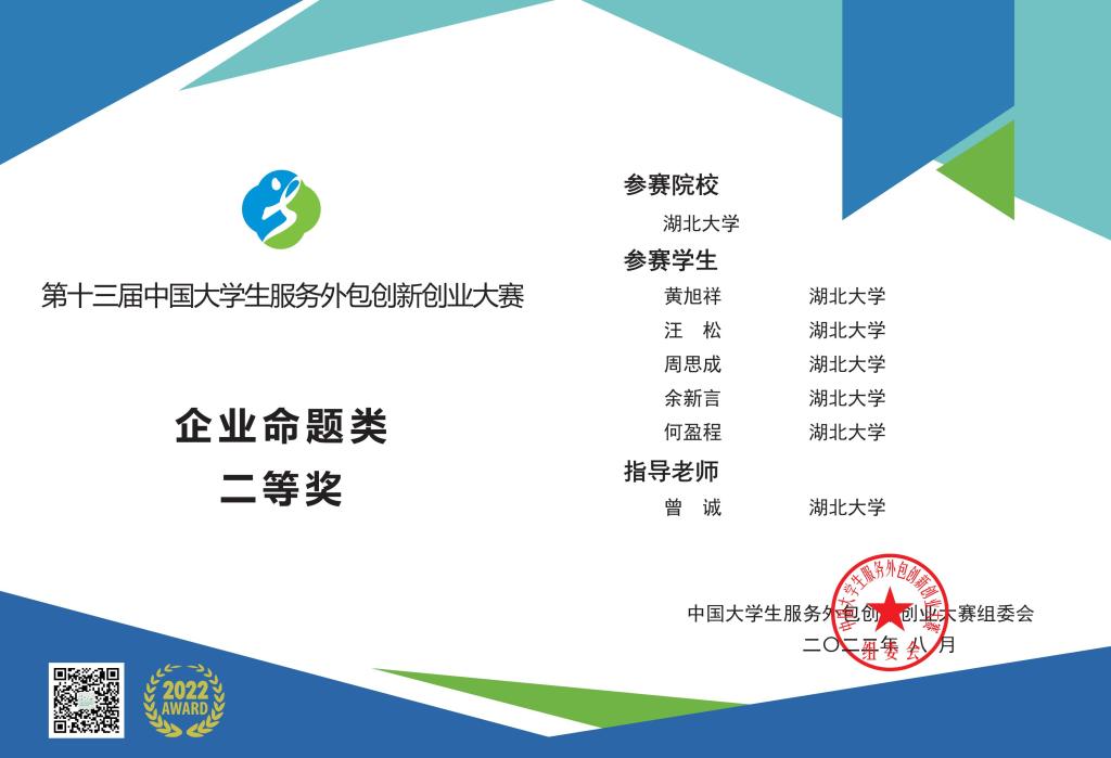 本届大赛共有899所全国院校的7781支团队报名,其中A类3146支团队进入初赛,根据疫情防控要求,仍然采取“线上”答辩的方式进行。“枫树”团队参与了“A22银行产品秒杀系统设计”企业类命题。在指导老师曾诚教授的带领下,队员黄旭祥、汪松、周思成、余新言、何盈程凭借扎实的计算机学科基础,以中部区域赛一等奖进入总决赛。最终从362支队伍中脱颖而出,荣获企业命题类全国二等奖。