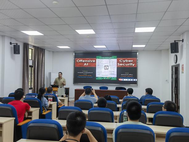 27日下午,Daniyal Alghazzawi教授在学院102会议室作了主题为“进攻性人工智能与网络空间安全”的学术报告。报告中,他对网络空间安全和人工智能领域的发展现状、研究趋势、关键技术和应用场景进行介绍,同时也介绍沙特阿拉伯阿卜杜勒阿奇兹国王大学、相关学院和科研活动的情况,并与参会的专家和师生对本领域的国际交流合作前景和机遇进行了交流和讨论。