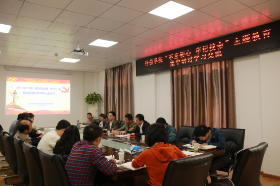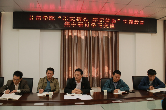 10月15日上午,计信学院党委在学院201会议室开展“不忘初心、牢记使命”主题教育专题集中研讨学习交流。研讨会由学院党委书记潘永才主持,学院领导班子成员、院党委委员、各党支部书记、学校主题教育第四巡回指导组成员参加了学习交流。