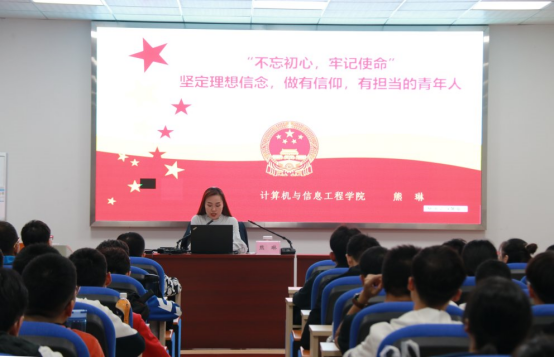10月23日晚7时,计信学院党委副书记熊琳在学院102会议室为学院第十一期入党积极分子讲授“‘不忘初心,牢记使命’坚定理想信念,做有信仰,有担当的青年人”专题党课。