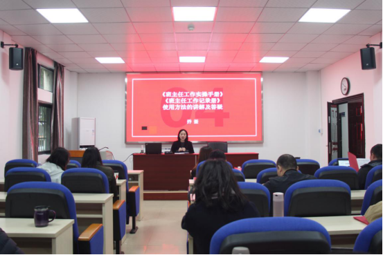 学工办老师乔荃随后对更新内容的《班主任工作实操手册》、《班主任工作记录册》进行详细地讲解。她围绕班主任日常事务性工作中的重难点和细节问题,着重讲解了2本手册更新的内容。
