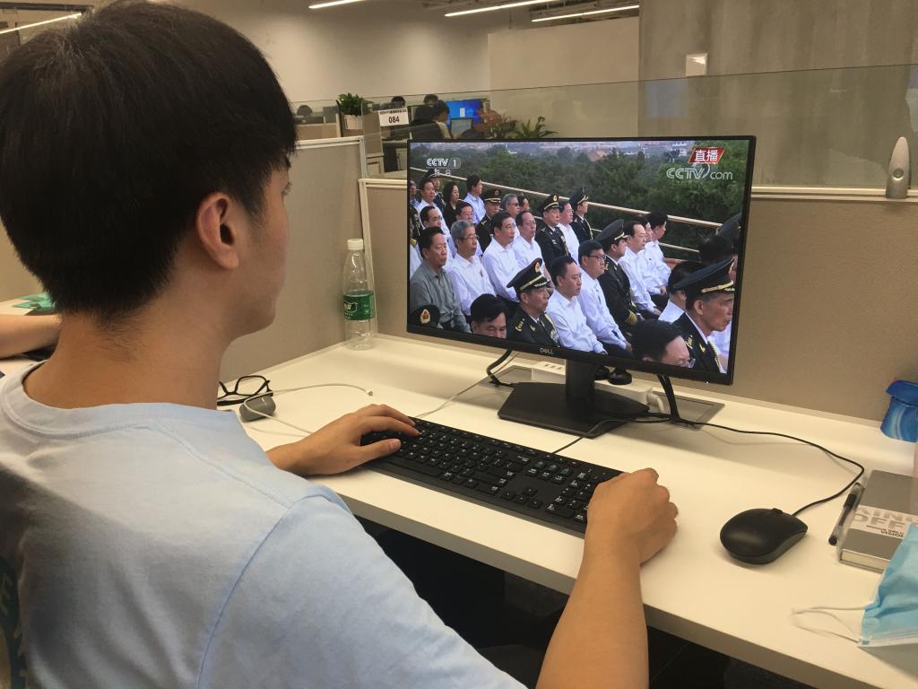 在收看过程中,紧随会议进程,全体参会人员高唱国歌,边听边记,认真学习领会习近平总书记的重要讲话精神。大会上,习近平总书记全面回顾了中国共产党100年来团结带领中国人民不懈奋斗的光辉历程以及做出的伟大历史贡献,展望了党和人民事业发展的光明前景,动员全党全国各族人民要更加充满信心朝着实现中华民族伟大复兴的中国梦不断迈进。