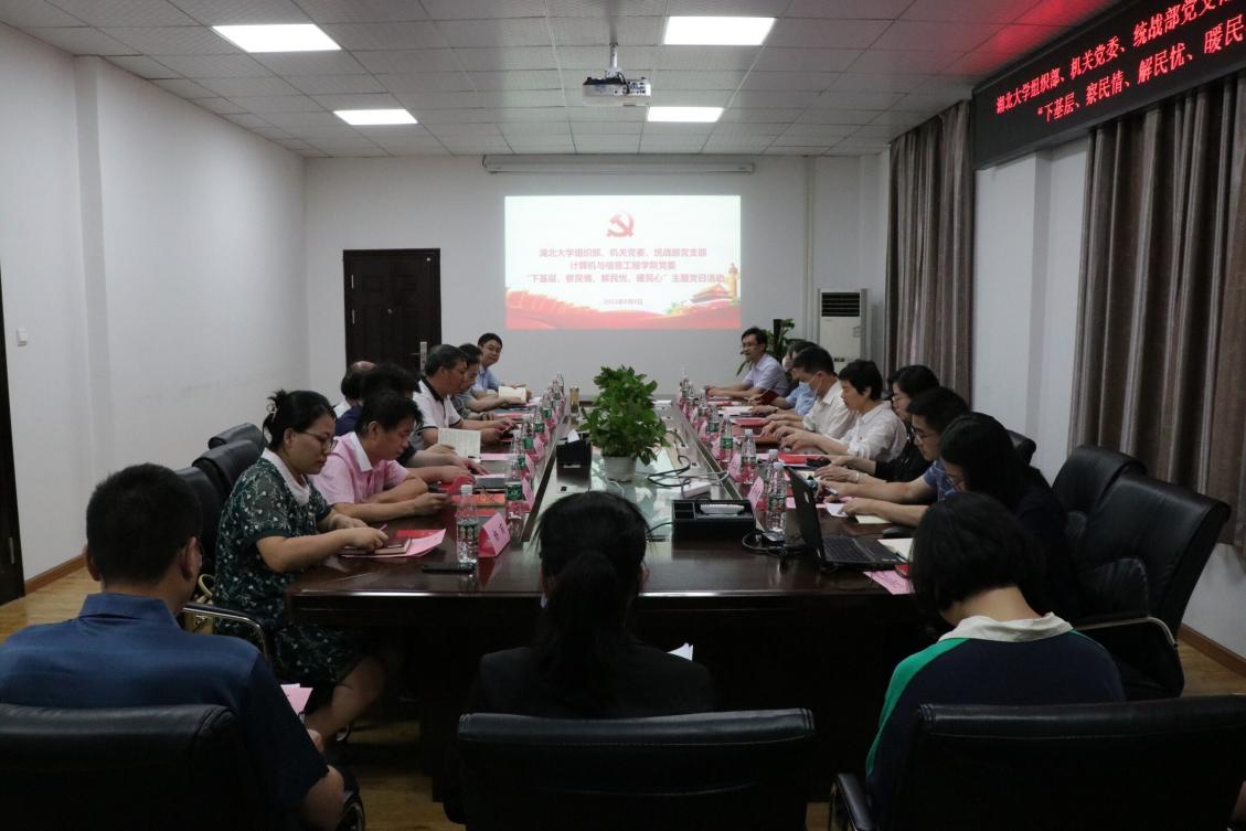 在全校持续深入推进党员干部下基层察民情解民忧暖民心实践活动之际,为进一步推进党史学习教育常态化长效化,走好新时代党的群众路线,计算机与信息工程学院党委联合校党委组织部、机关党委、统战部党支部,于6月9日下午在学院201会议室召开“下基层、察民情、解民忧、暖民心”主题党日活动。校党委副书记侯勇,校党委组织部、机关党委、统战部党支部全体党员,计算机与信息工程学院党委委员、领导班子、支部书记、学生党员代表参加活动。院党委书记秦明君主持活动。