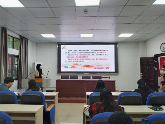 10月19日中午,学院研究生第二党支部在102会议室开展了以“学习习近平总书记重要讲话精神”为主题的党日活动,会议由第五党小组周寅莹同志主持。与会党员集中观看学习《习近平总书记在中共中央政治局第三十三次集体学习时的重要讲话》《习近平总书记在中央人才工作会议上的重要讲话》相关视频。周寅莹表示,我们党立志于中华民族千秋伟业,作为青年一代定要做拥护中国共产党领导和我国社会主义制度、为中国特色社会主义事业奋斗终身的有用人才。