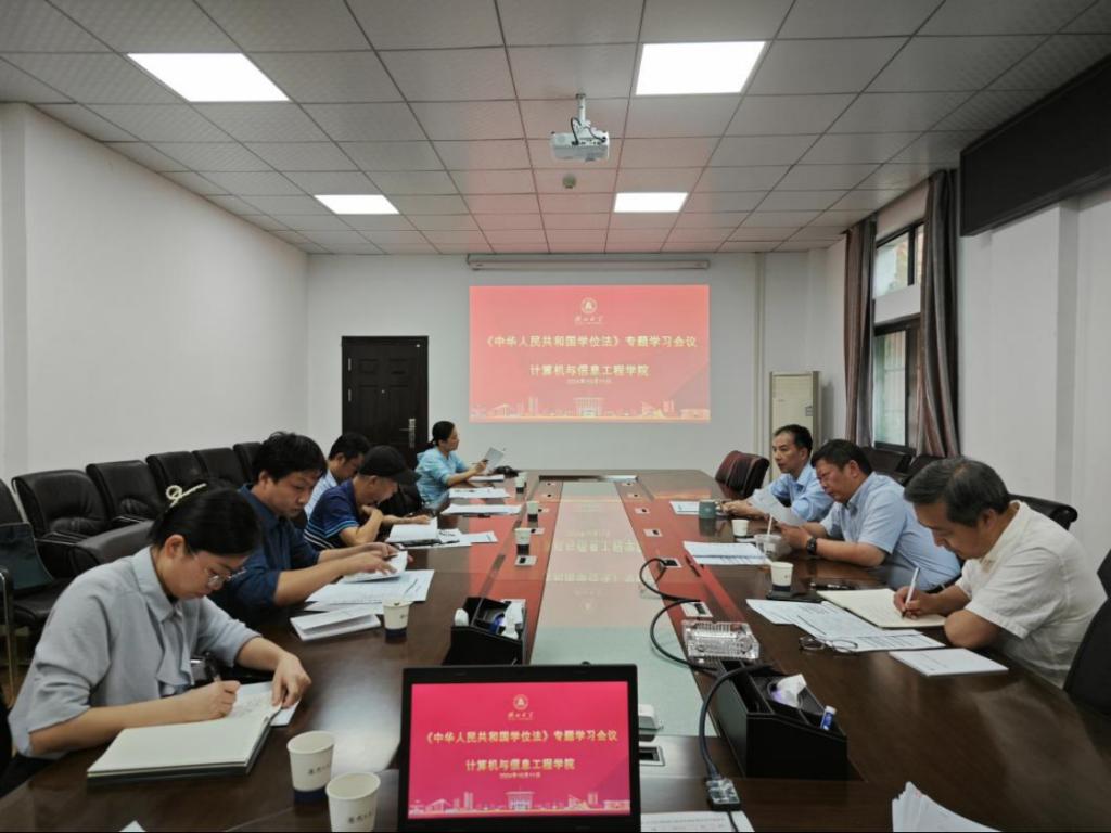 为贯彻落实国家教育政策,加强对学位制度的理解与认知,2024年10月11日下午,伟德国际victor1946计信学院在学院201会议室组织召开《中华人民共和国学位法》专题学习会。计信学院党委书记秦明君、院长王时绘、副院长杨超和院学位委员会委员等出席会议。会议由学院党委书记秦明君主持。