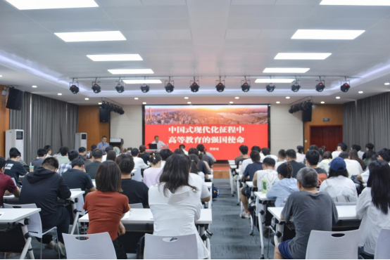 曾祥勇教授从教育强国的战略演进、中国式现代化的高教支撑、普及化阶段的实践审视、教育强国走在前列的湖北答卷四个维度,深刻阐释了中国式现代化进程中高等教育的强国使命。他指出,教育强国建设是中国式现代化的有机组成部分,教育强国既是教育自身的强大和现代化,也是以自身发展为全面建设社会主义现代化国家提供基础性、战略性支撑,服务和促进社会发展,实践和拓展中国式现代化理论与实践的关键环节。在分析中国式现代化与高等教育的关系时,他强调,高等教育是“国之战略重器”,需在人才培养、科研创新等方面发挥龙头作用。结合湖北实践,聚焦“建强学科、平台、队伍,推进‘71020’高校创新体系建设”目标任务,他希望,各学院紧紧围绕国家战略需求和湖北发展大局,立足实际,充分发挥学科优势,深化深度融通人才培养特色,在服务湖北教育强省建设中走在前列,为加快建成中部地区崛起的重要战略支点贡献智慧和力量。
